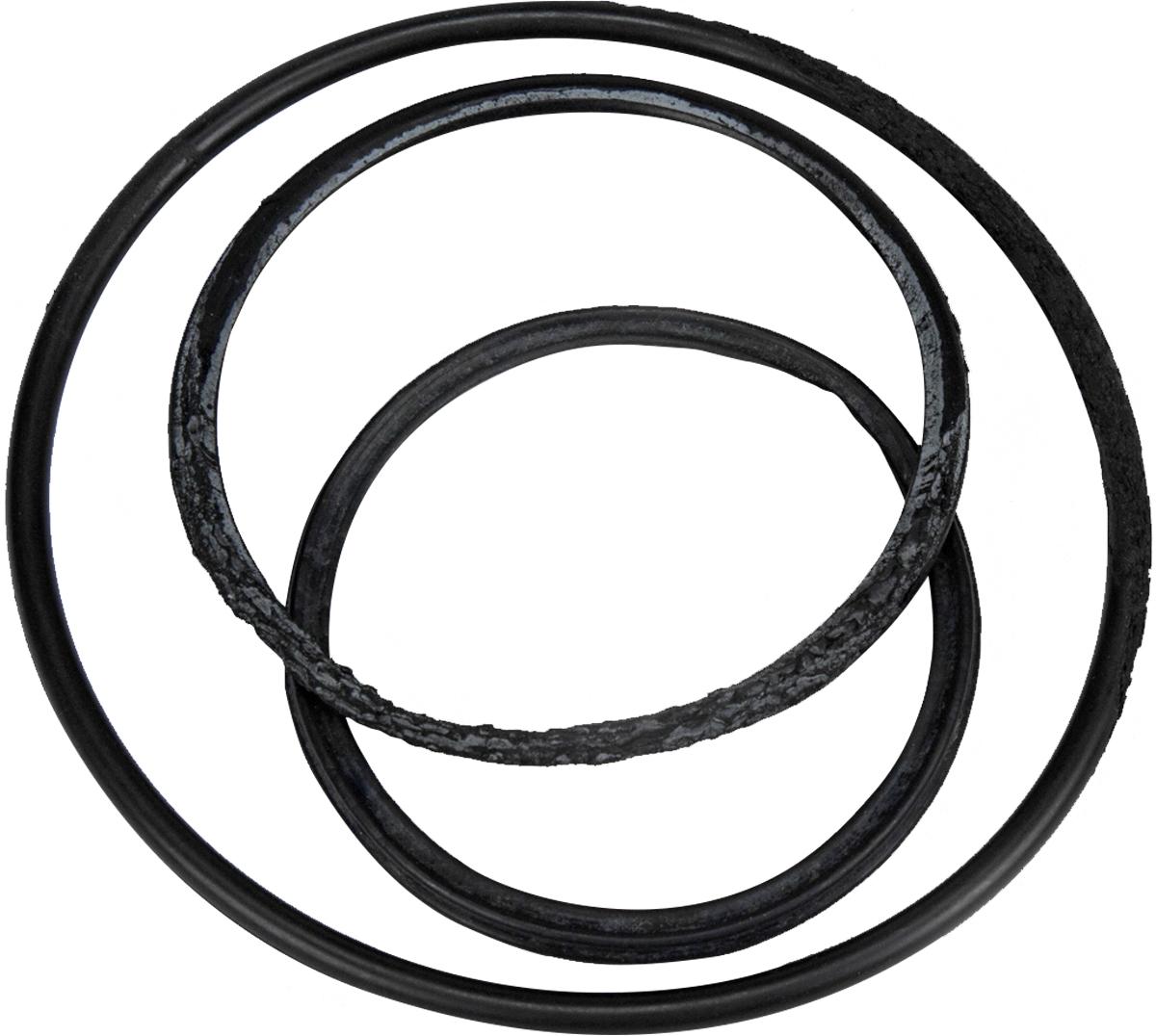 Extrusion in radial seals can be prevented by adding a plastic or metal backup ring or by decreasing the gland clearance gap. The option of a properly-sized, harder O-ring material may also be beneficial. During application design, evaluate the approximate pressure rating for the seal. Additionally, confirm the elastomer compatibility with the temperature range and fluids used in the application.